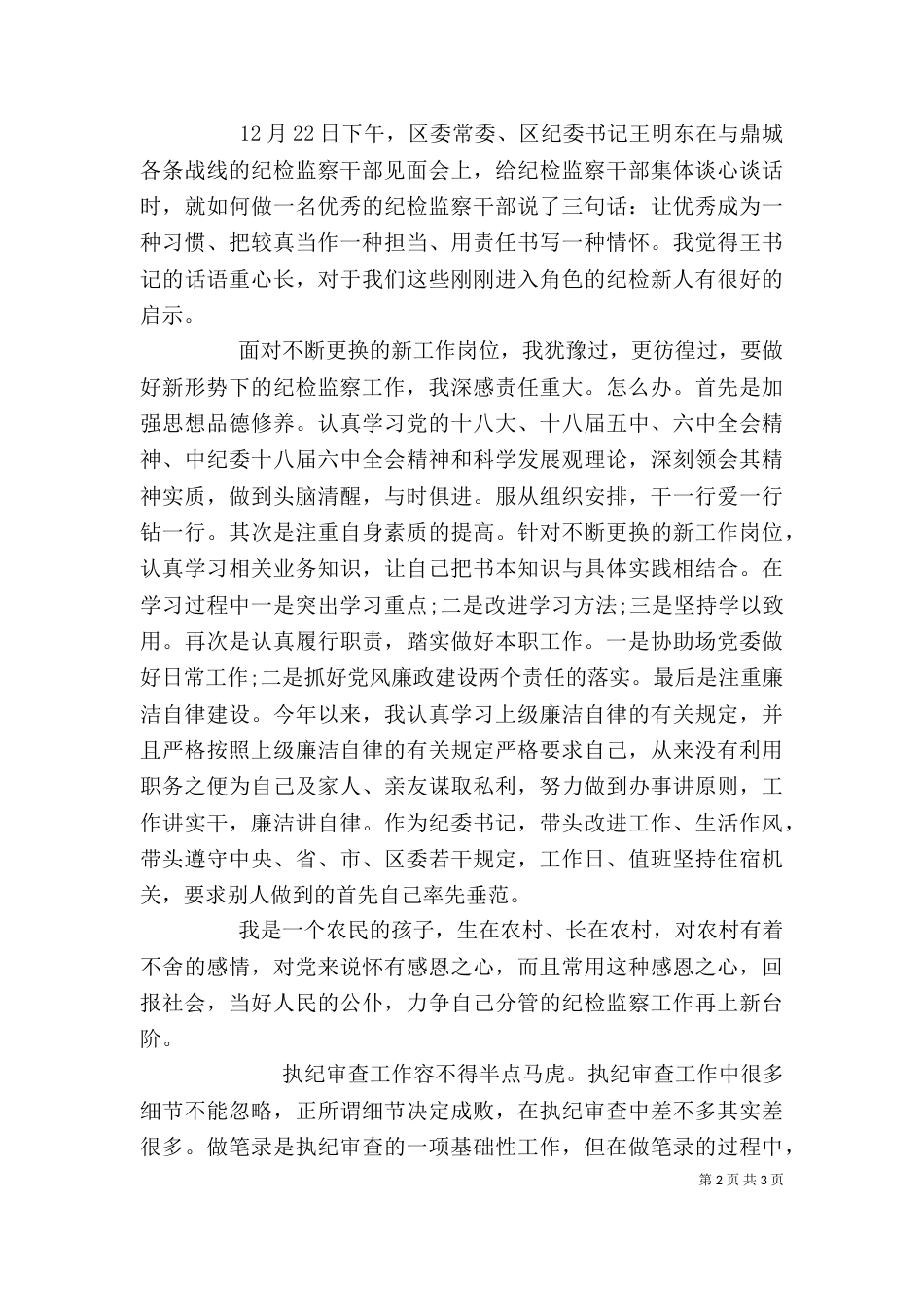 第1页共3页纪检监察工作心得3篇纪检监察干部修身要重视自我审查。《论语》有云。吾日三省吾身。省是一种自律,以律己之心不断加强自我约束...