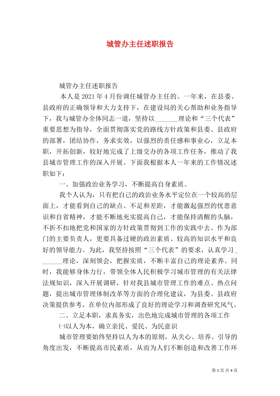 城管办主任述职报告(四)_第1页