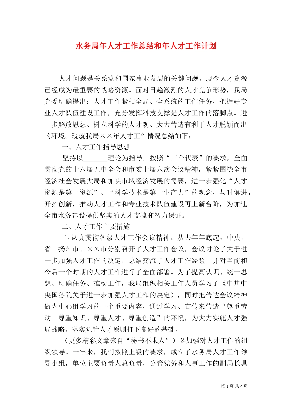 水务局年人才工作总结和年人才工作计划(二)_第1页