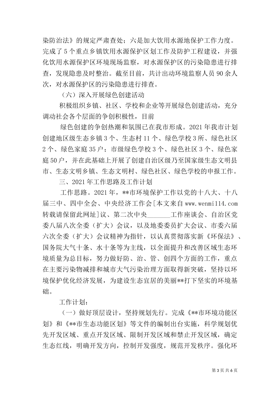 第1页共6页环保局2021年工作总结2021年,**市环保局以强化环境监督管理为保障,以改善区域环境质量、保障群众健康为目标,落实责任、强化执...