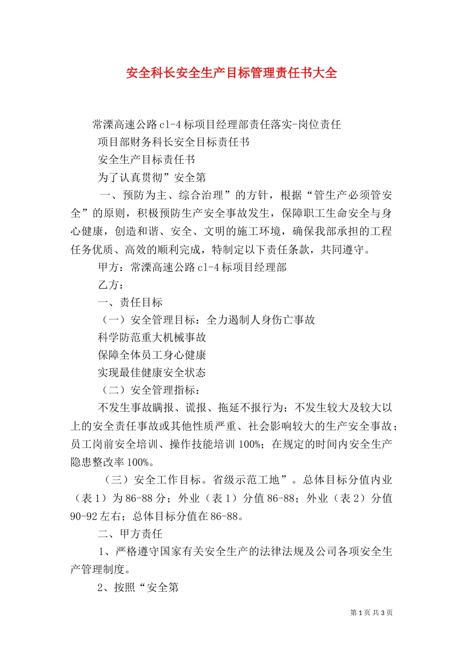 第1页共3页书山有路勤为径,学海无涯苦作舟。安全科长安全生产目标管理责任书大全常溧高速公路cl-4标项目经理部责任落实-岗位责任项目部财...