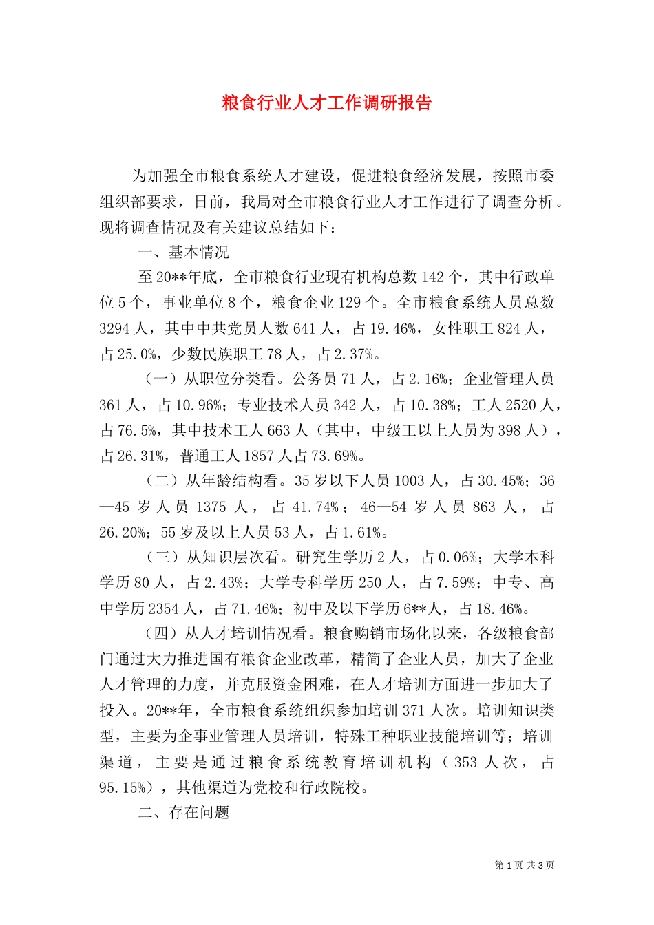 第1页共3页书山有路勤为径,学海无涯苦作舟。粮食行业人才工作调研报告为加强全市粮食系统人才建设,促进粮食经济发展,按照市委组织部要求...