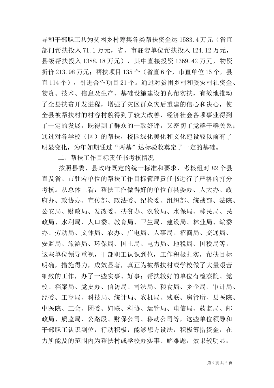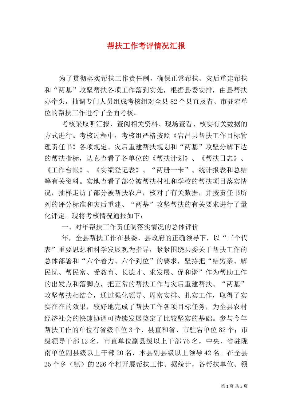 第1页共5页书山有路勤为径,学海无涯苦作舟。帮扶工作考评情况汇报为了贯彻落实帮扶工作责任制,确保正常帮扶、灾后重建帮扶和“两基”攻坚...