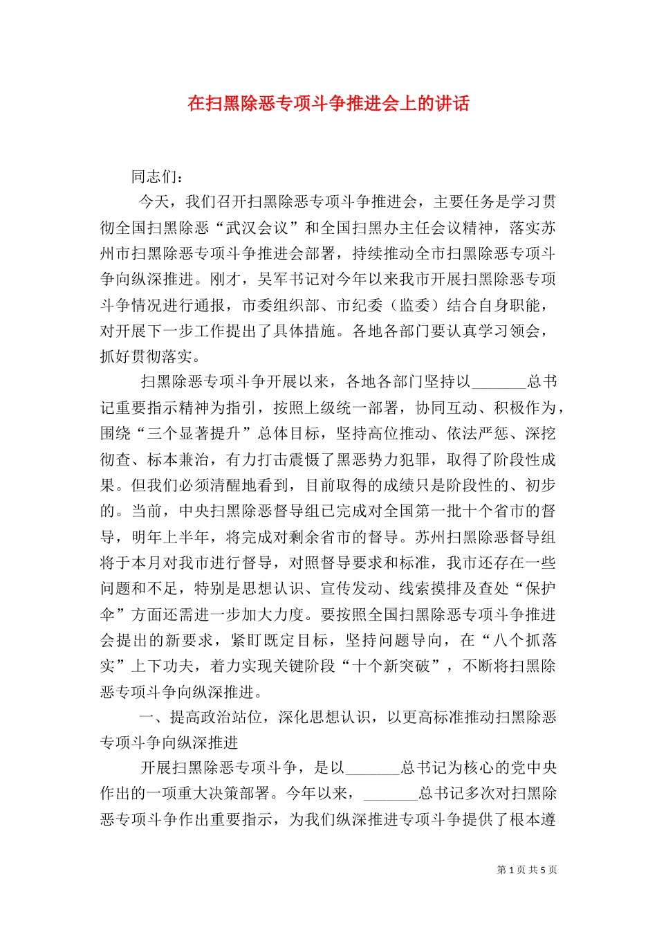 在扫黑除恶专项斗争推进会上的讲话(一)_第1页