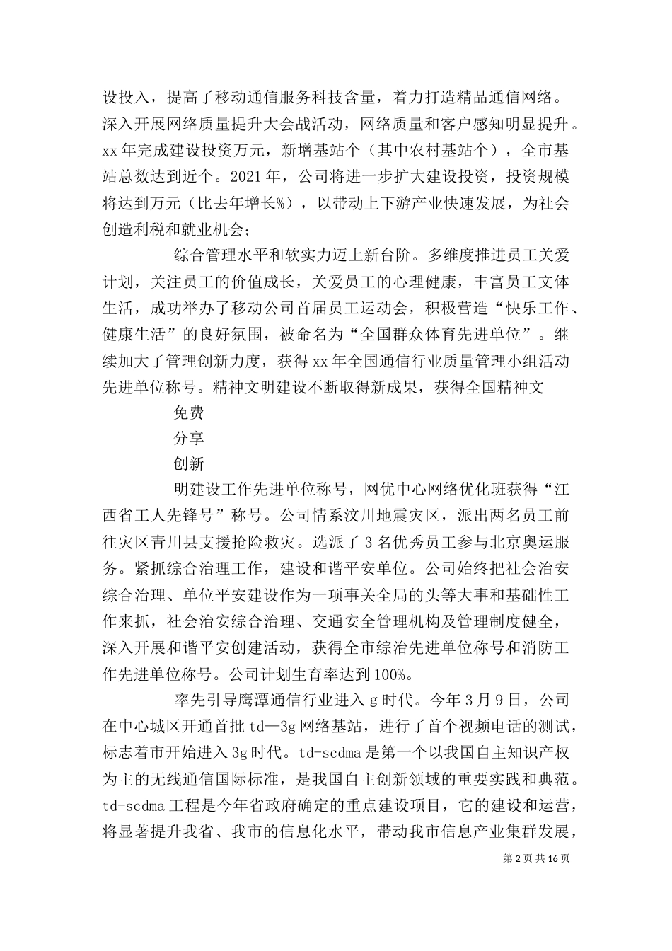 第1页共16页述职报告:地方移动分公司述职报告分享创新尊敬的各位领导、各位代表、各位委员:根据市委安排,我代表中国移动通信有限公司分...