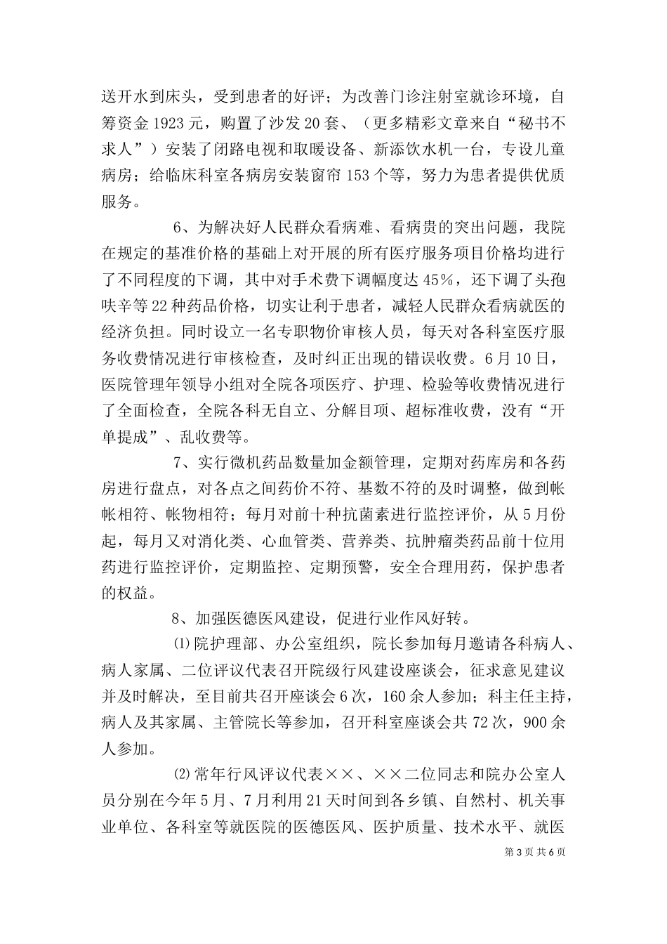 第1页共6页医院院长年度述职述廉报告××年医院工作在县委、县政府的正确领导下、在主管局的关心指导下,认真实践“三个代表”重要思想,开...