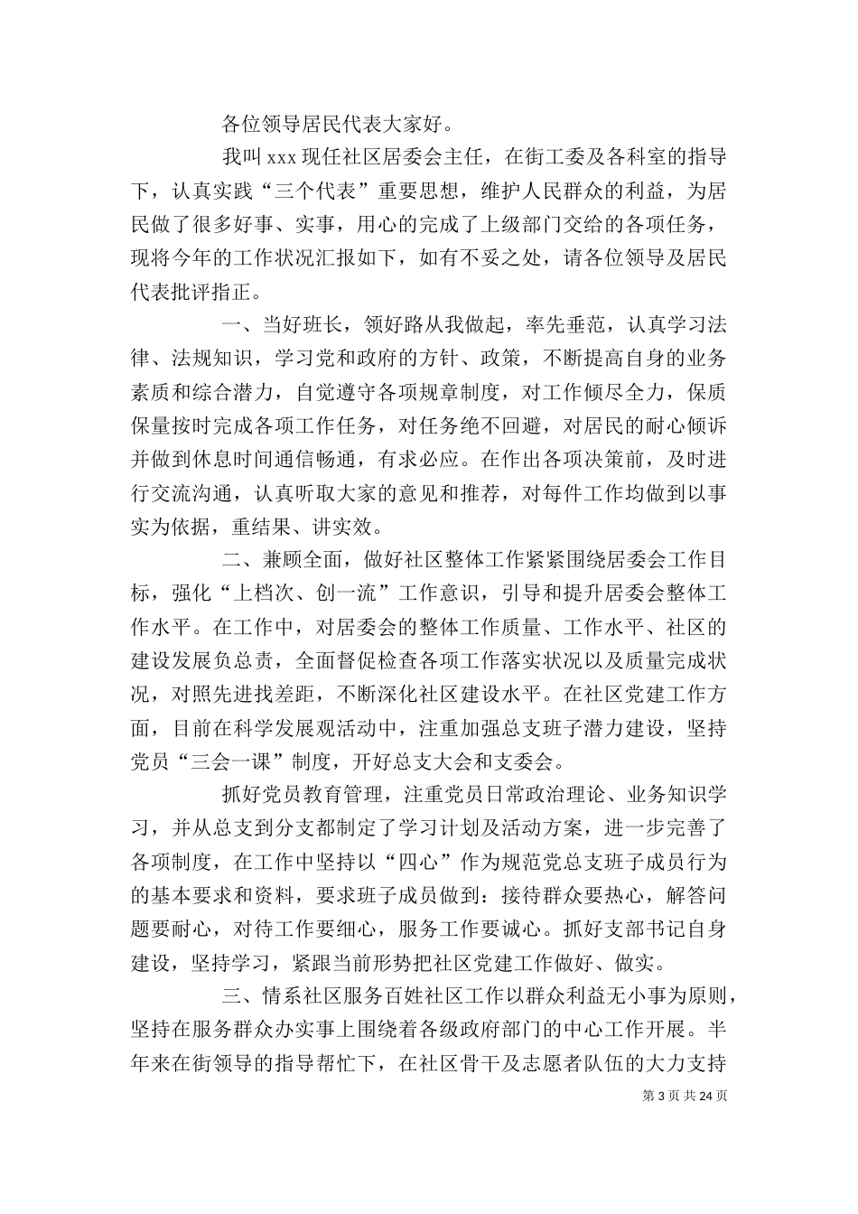 第1页共24页街道主任年度述职报告10篇【篇一】各位领导:大家好。首先作一下自我介绍,我叫xx,是xx社区主任。我是于20xx年12月xx日当选为x...