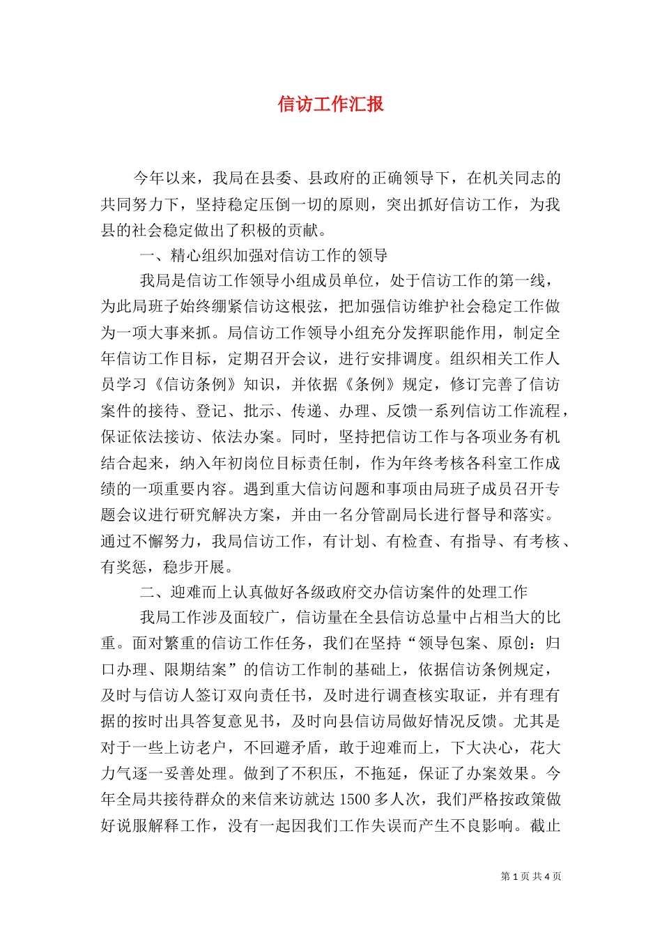 第1页共4页书山有路勤为径,学海无涯苦作舟。信访工作汇报今年以来,我局在县委、县政府的正确领导下,在机关同志的共同努力下,坚持稳定压...