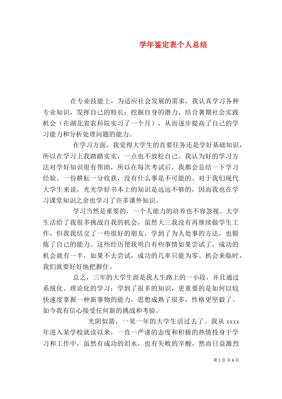 第1页共6页学年鉴定表个人总结在专业技能上,为适应社会发展的需求,我认真学习各种专业知识,发挥自己的特长;挖掘自身的潜力,结合暑期社...
