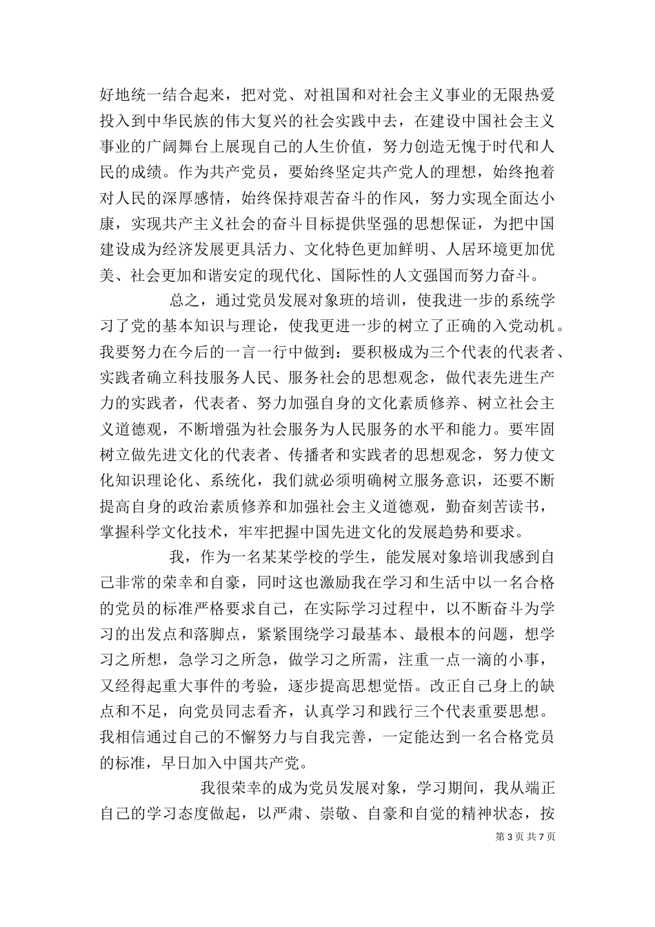 第1页共7页发展对象培训心得体会通过学习,我进一步认识了中国共产党,对党的性质和宗旨有了更为深入的理解。中国共产党是中国工人阶级的先...