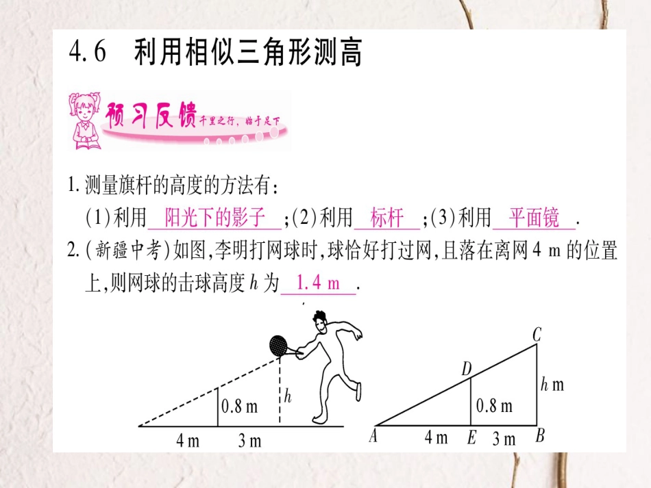 九年级数学上册 4.6 利用相似三角形测高习题课件 (新版)北师大版