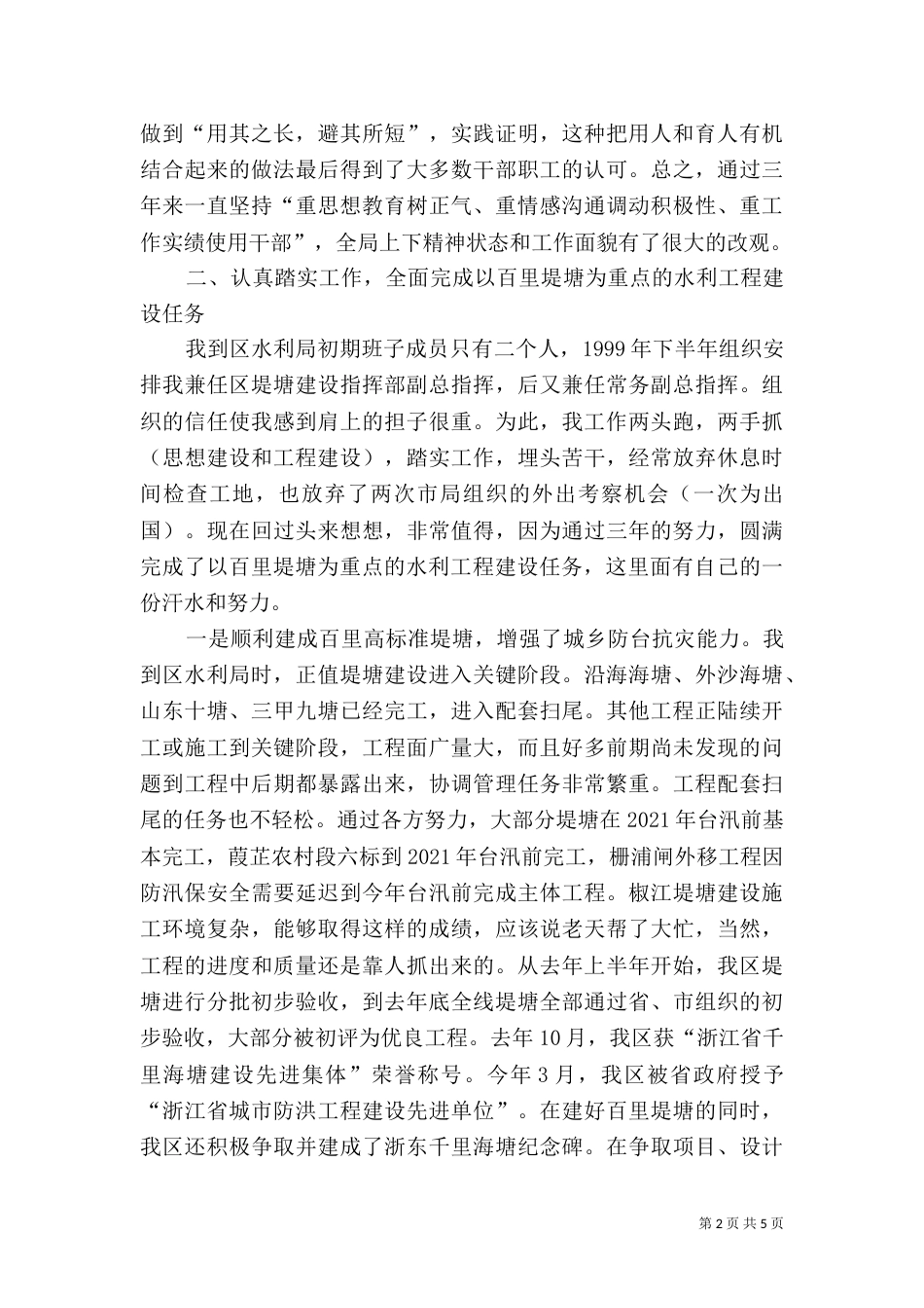 第1页共5页书山有路勤为径,学海无涯苦作舟。水利局局长述职报告主任、副主任、各位委员:我是1999年4月任副局长,主持区水利局工作,同年7...
