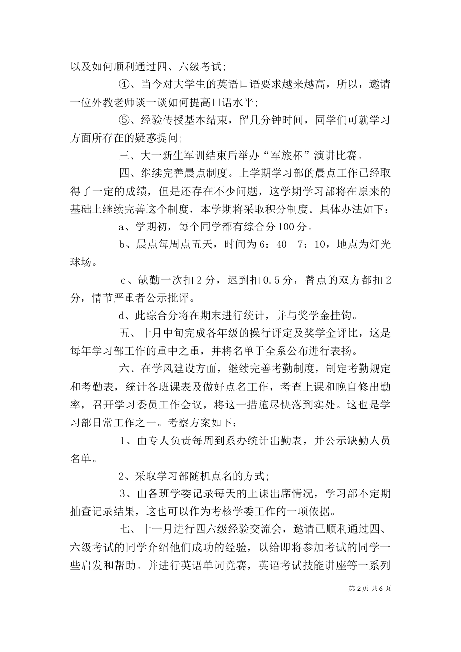 第1页共6页大学部门工作计划范文2021一、在新学期开始,为做好我系201x年迎新工作,学习部将积极配合团总支学生会做好迎新工作,真正做到为...