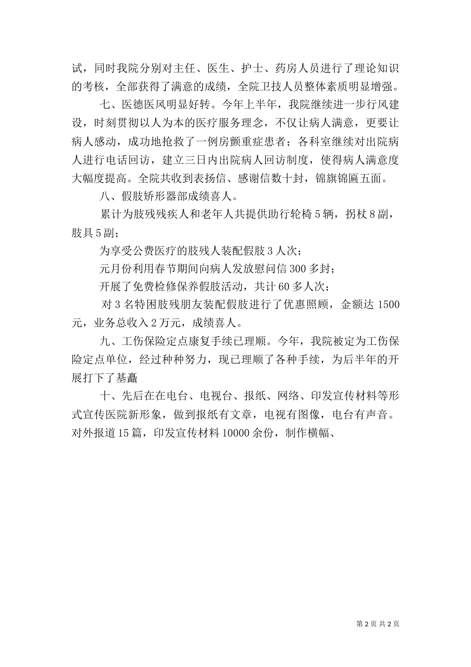 第1页共2页书山有路勤为径,学海无涯苦作舟。康复医院上半年工作总结坚持以人为本,努力构建和谐医院s0100建立长效机制,不断取得更大成绩...