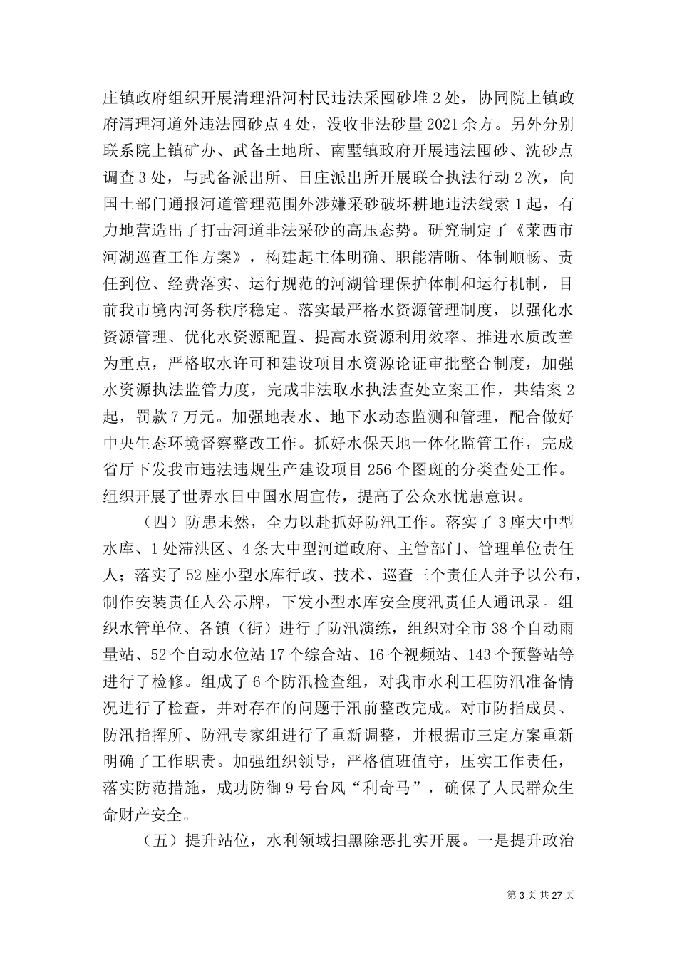 第1页共27页书山有路勤为径,学海无涯苦作舟。水利局工作总结4篇【篇一】现将20xx年工作总结如下:一、工作开展情况(一)强化调度,年度重...