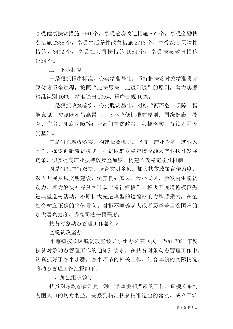 第1页共8页书山有路勤为径,学海无涯苦作舟。扶贫对象动态管理工作总结1全市2021年扶贫对象动态管理工作开展以来,××县对照“精准识别100...