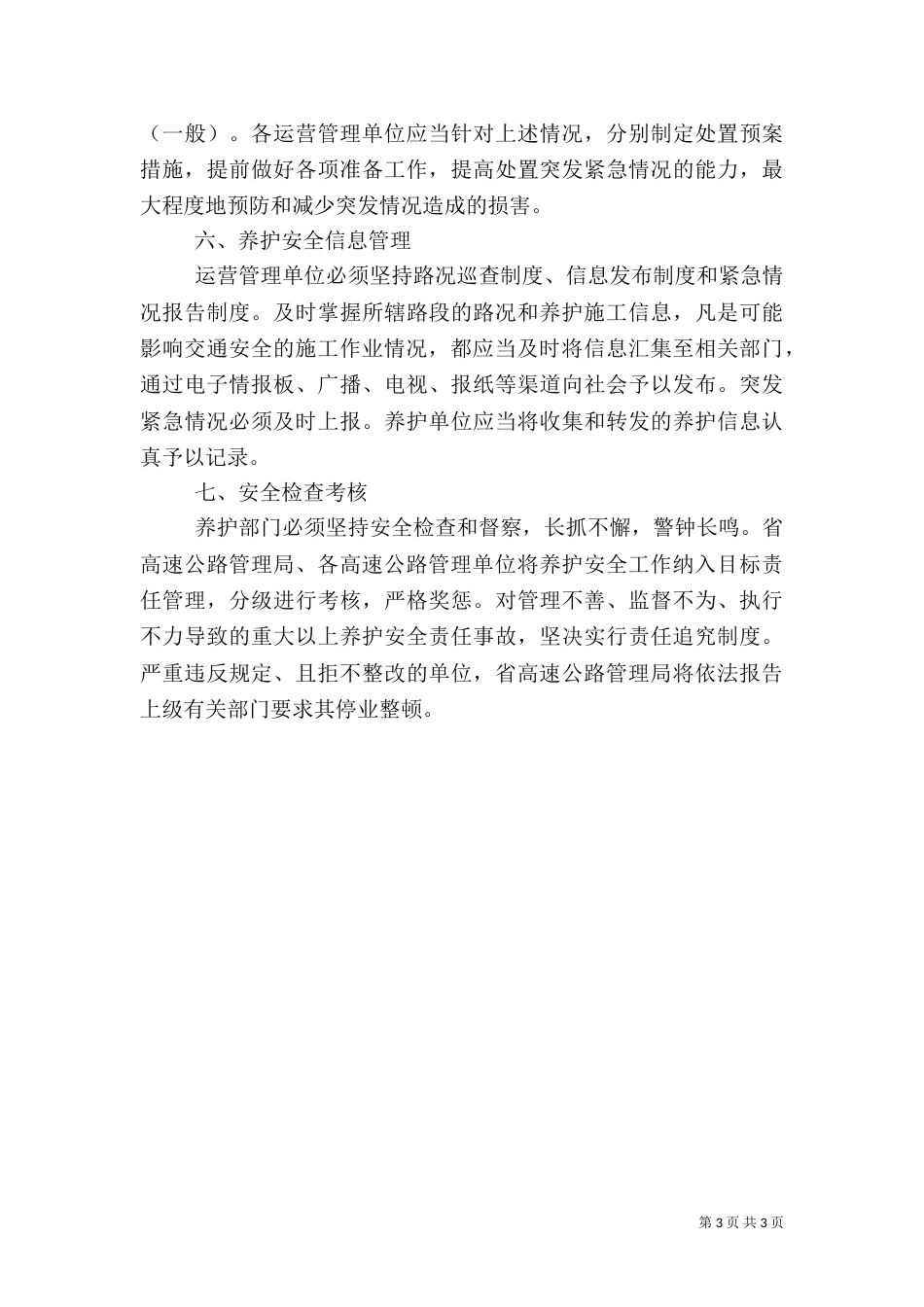第1页共3页书山有路勤为径,学海无涯苦作舟。公路养护管理段安全生产管理制度高速公路养护施工安全管理制度高速公路养护施工安全直接关系高...