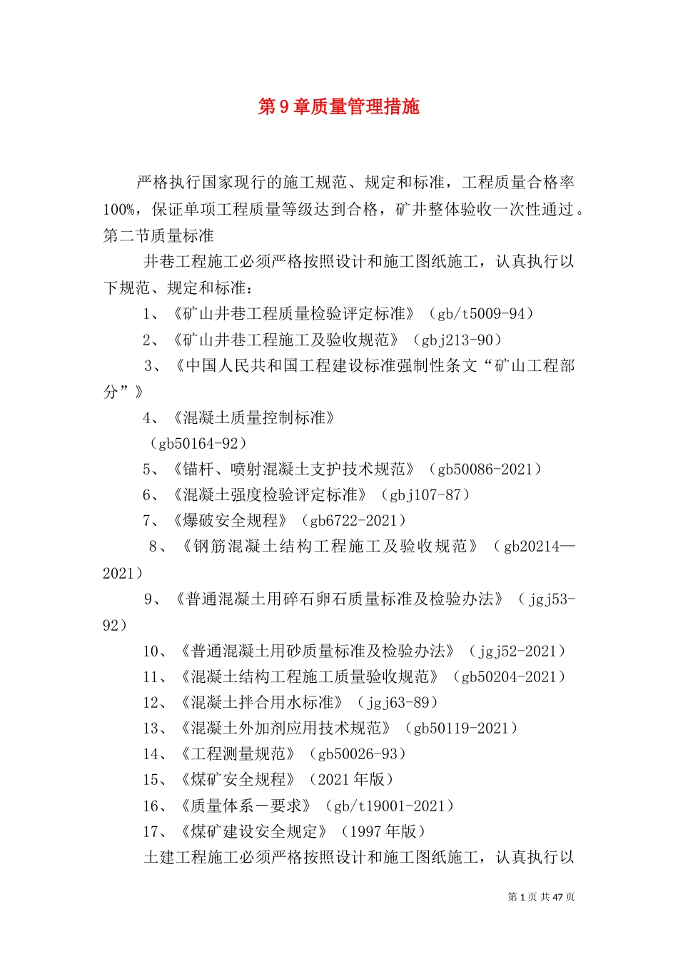 第1页共47页书山有路勤为径,学海无涯苦作舟。第9章质量管理措施严格执行国家现行的施工规范、规定和标准,工程质量合格率100%,保证单项工...