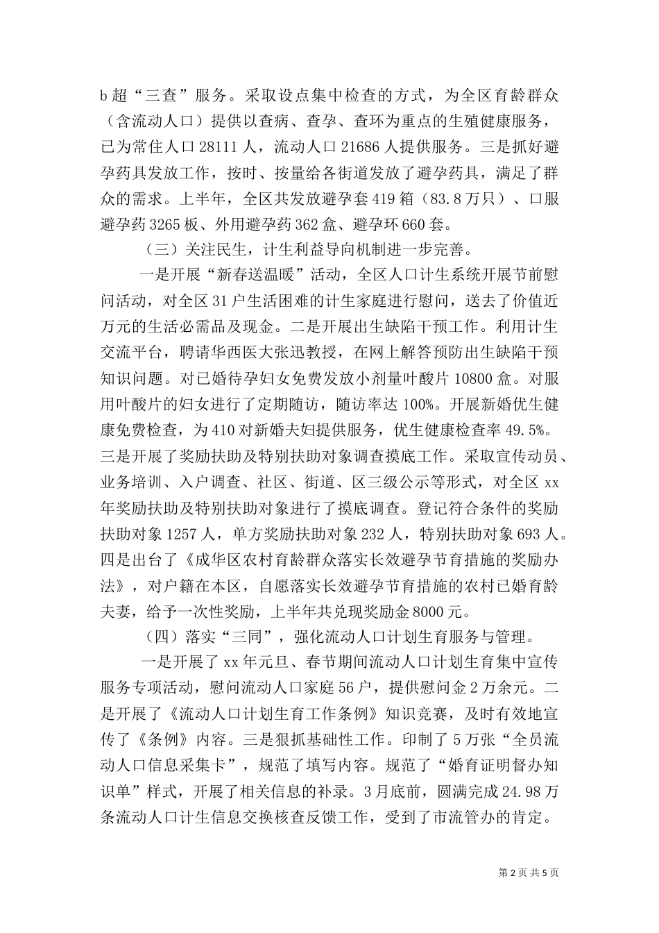 第1页共5页书山有路勤为径,学海无涯苦作舟。计划生育上半年总结范例xx年,在区委、区政府的正确领导下,我局坚持以“三个代表”重要思想和...