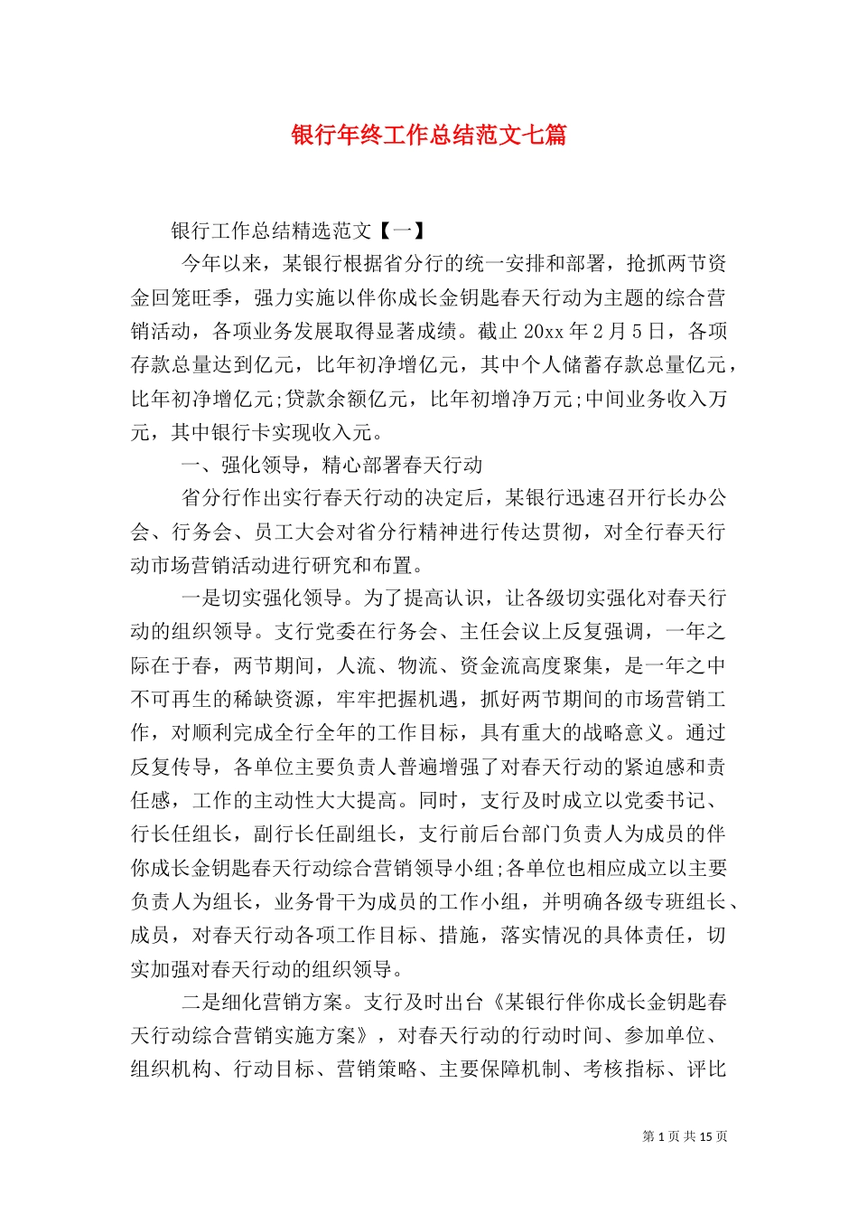 第1页共15页书山有路勤为径,学海无涯苦作舟。银行年终工作总结范文七篇银行工作总结精选范文【一】今年以来,某银行根据省分行的统一安排...