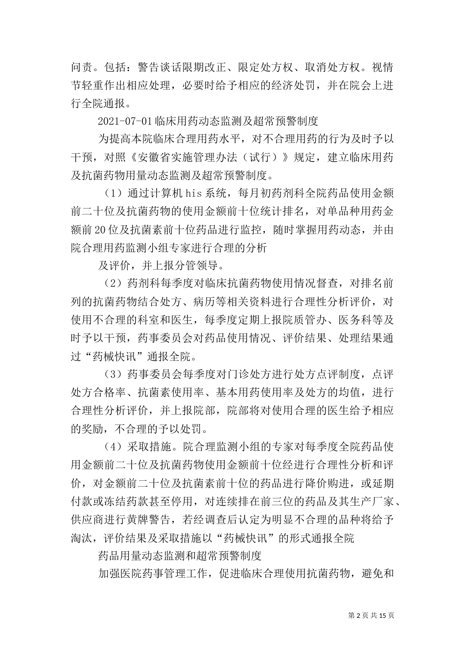 第1页共15页书山有路勤为径,学海无涯苦作舟。医院药品用量动态监测和超常预警制度为加强医院药事管理工作,促进临床合理使用抗菌药物,避...