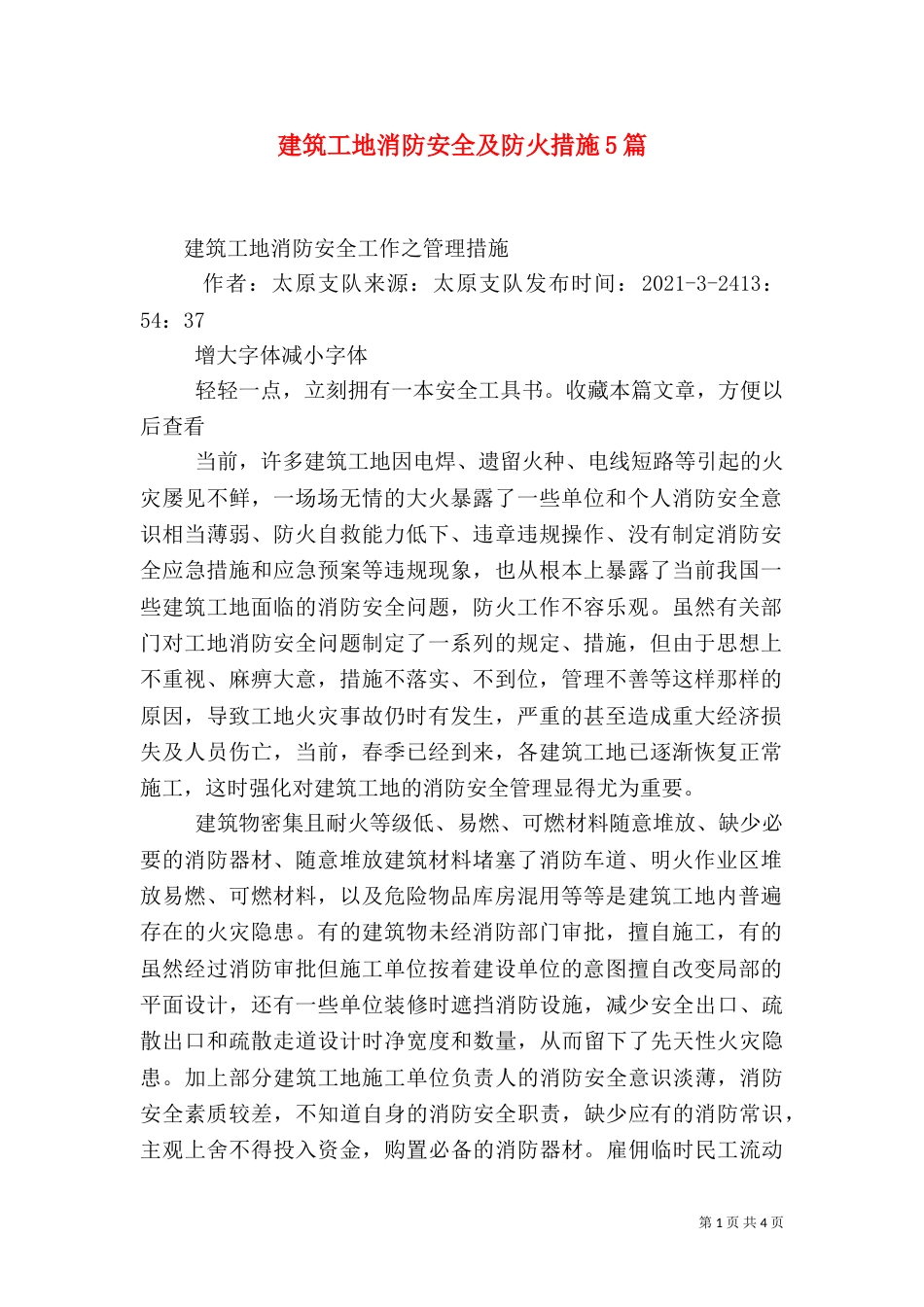 建筑工地消防安全及防火措施5篇(一)_第1页