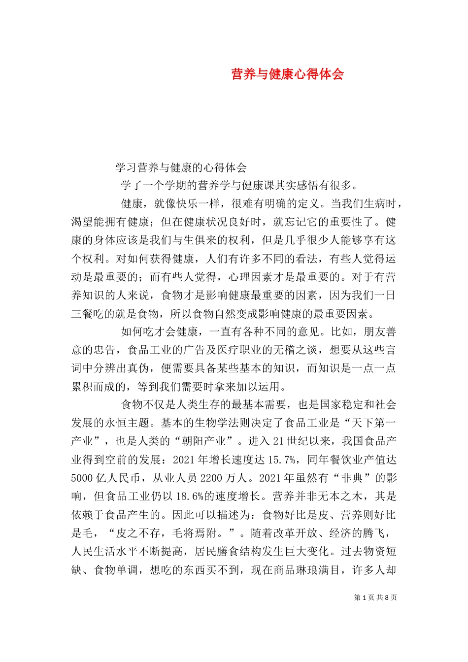 营养与健康心得体会(四)_第1页