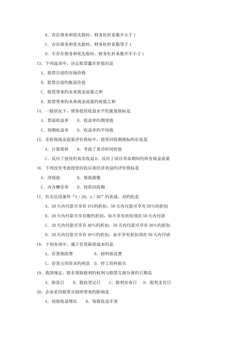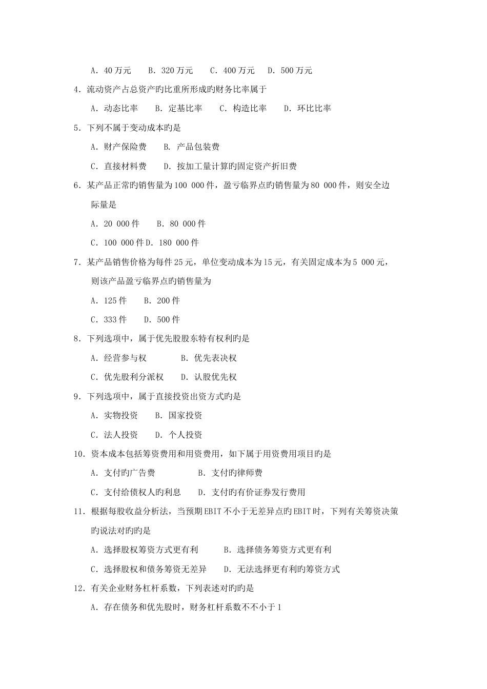 2023年10月自考00067财务管理学试题及答案含评分标准_第2页