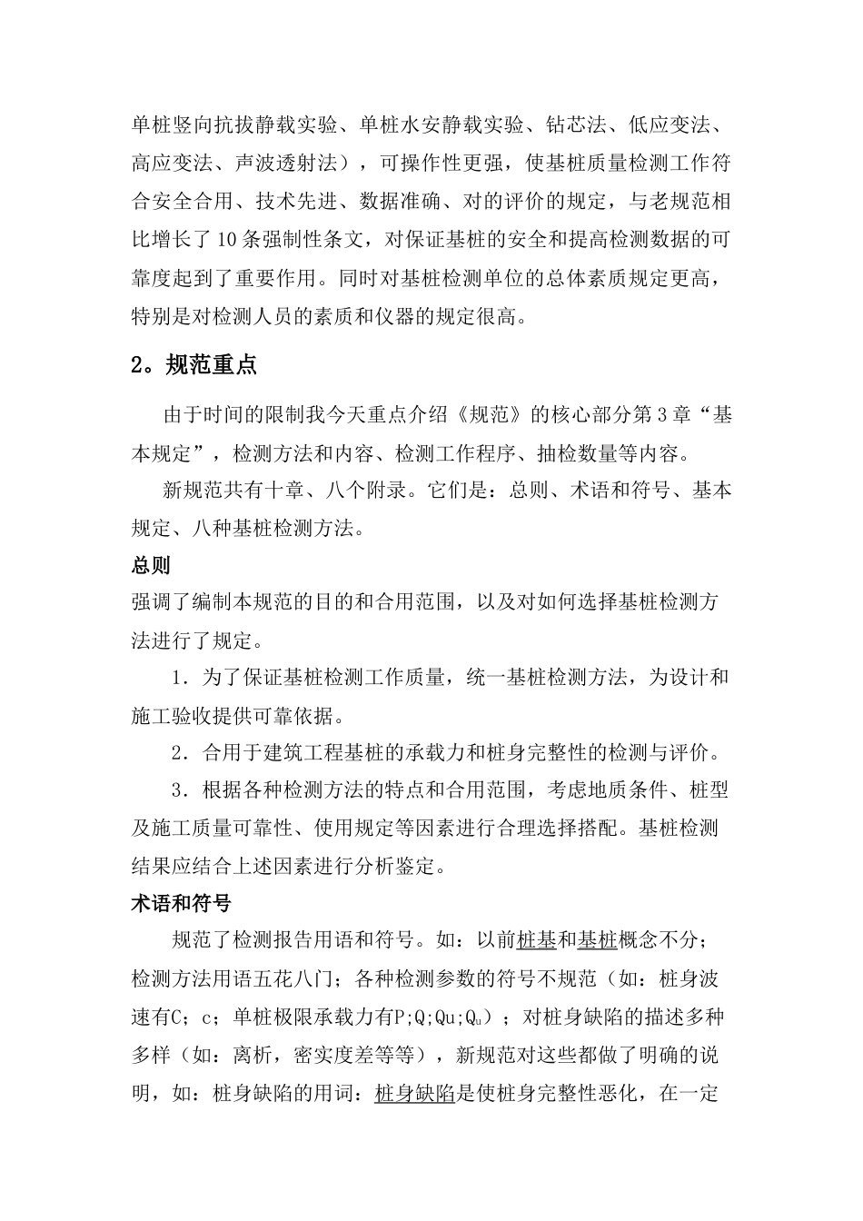 执行《基桩检测技术规范》和贯彻《安徽省建筑基桩检测管理规定》情况介绍安徽省建筑工程质量监督检测站王晓泉一.JGJ106—2023《建筑基桩检...