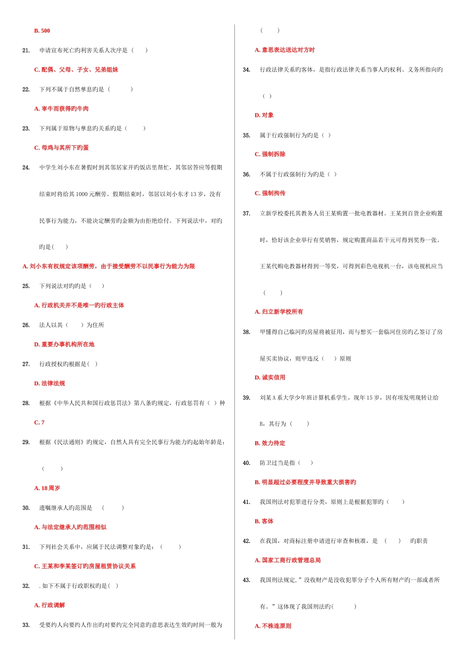 2023年实用法律基础河南电大土木工程本科教学考一体化答案_第2页