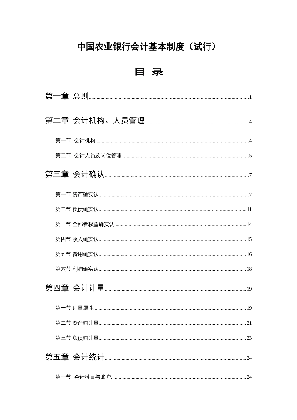 中国农业银行会计基本制度(试行)目录第一章总则.......................................................................................