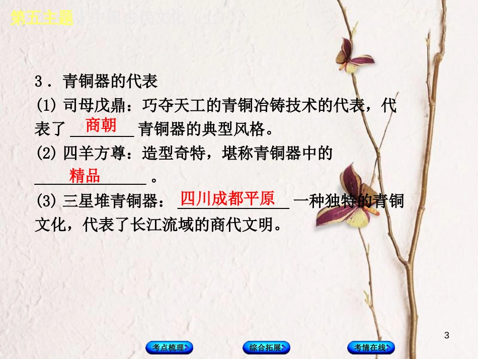 第五主题中国古代文化(上)考点梳理考点梳理综合拓展综合拓展考情在线考情在线1第五主题┃中国古代文化(上)考点梳理考点1青铜工艺的杰出...
