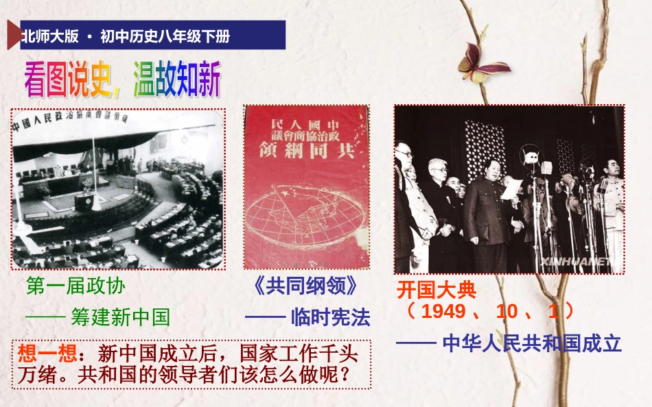 北师大版·初中历史八年级下册《共同纲领》——临时宪法第一届政协——筹建新中国开国大典(1949、10、1)——中华人民共和国成立想一想:...