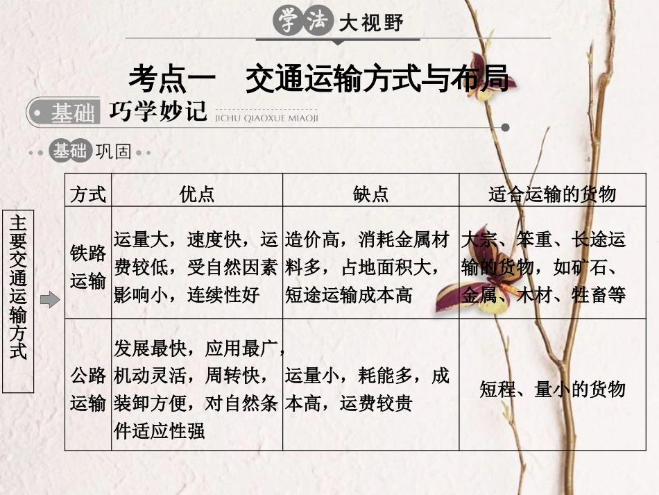 第十二单元人类活动的地域联系考纲考点扫描考查频度命题趋势全国卷地方卷1.交通运输方式与布局2017·课标Ⅲ,4城市交通2016·课标Ⅲ,36(2)...
