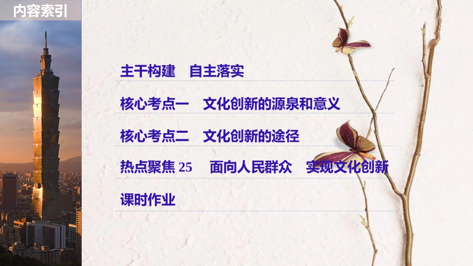 2019届高考政治一轮复习 第十单元 文化传承与创新 第25课 文化创新课件 新人教版必修3_第1页