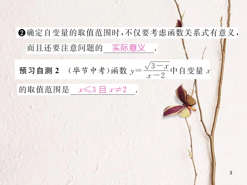(遵义专版)八年级数学下册 第19章 一次函数 19.1 变量与函数 19.1.1 第2课时 函数作业课件 (新版)新人教版_第3页