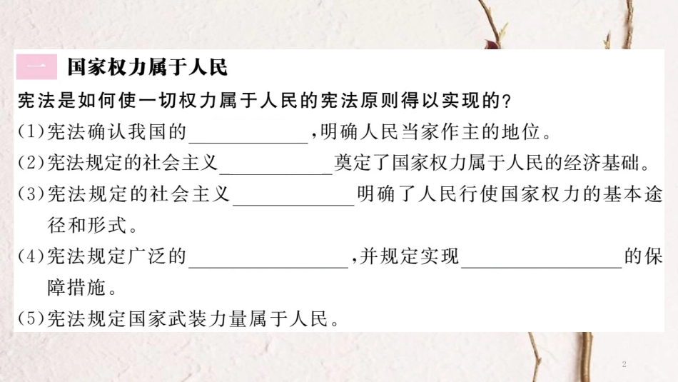 八年级道德与法治下册 第一单元 坚持宪法至上 第一课 维护宪法权威 第1框 公民权利的保障书习题讲评课件 新人教版(1)_第2页