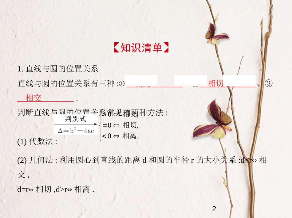 (江苏专版)2019版高考数学一轮复习 第十四章 平面解析几何初步 14.3 直线与圆、圆与圆的位置关系课件_第2页
