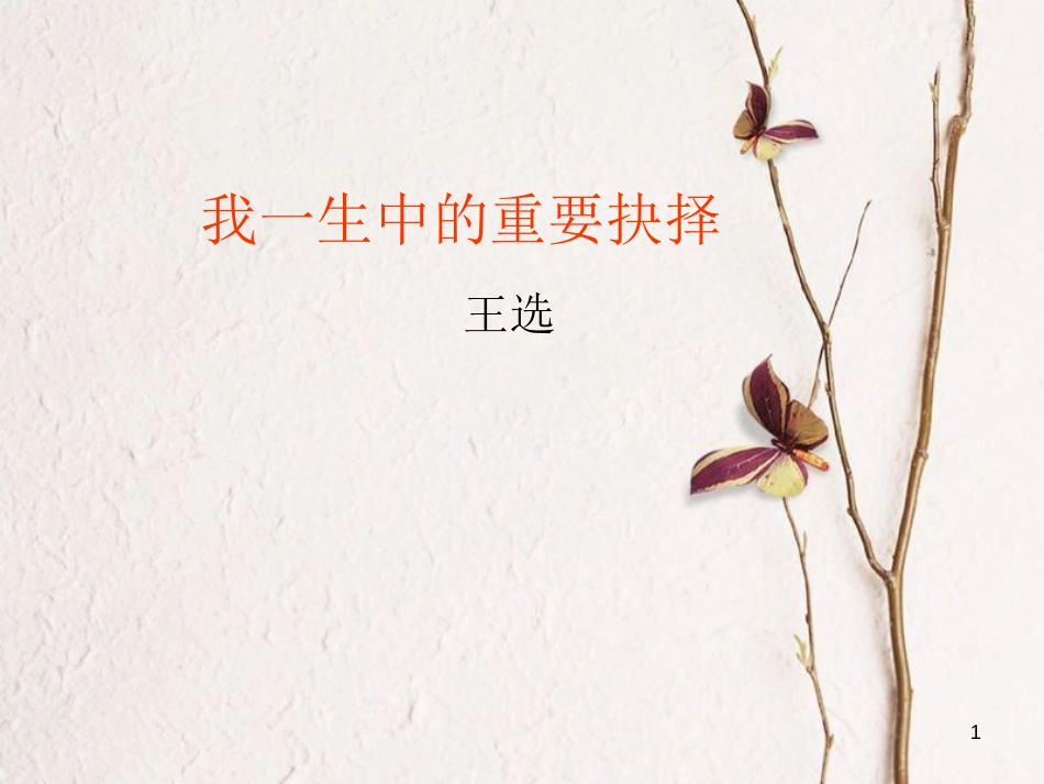 我一生中的重要抉择王选1教学目标1.识记课文主要词语。了解王选一生重要的抉择和贡献。2.体会这篇演讲稿风趣幽默的语言特色。3.学习王选先...
