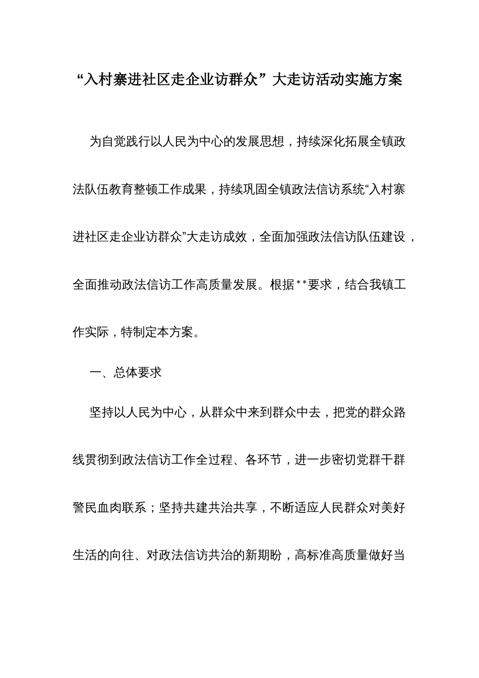 “入村寨进社区走企业访群众”大走访活动实施方案_第1页