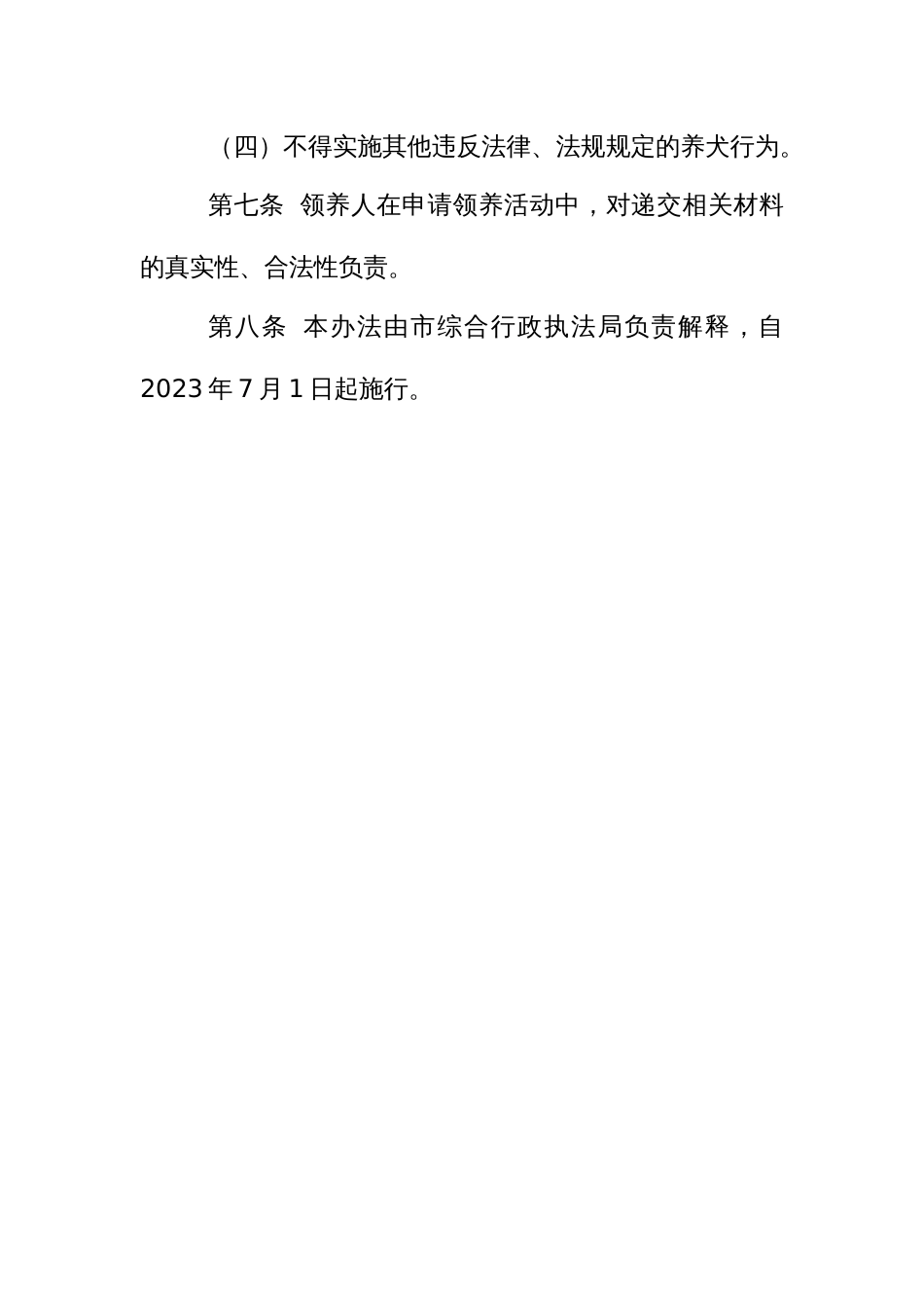 收容犬只领养办法为规范收容犬只领养工作,提高服务保障水平,促进人与犬只和谐相处,根据《市养犬管理规定》,结合我市实际,制定本办法。...