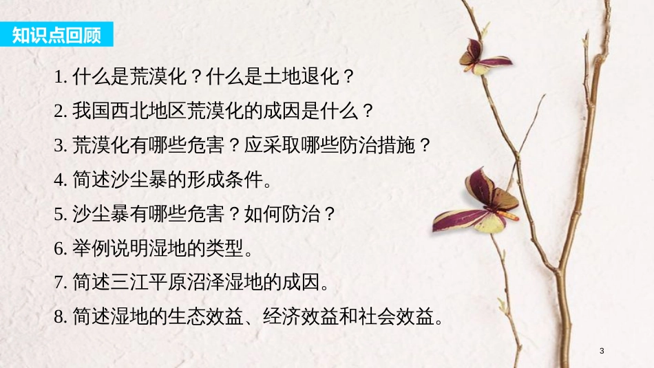 章末整合第二章区域可持续发展1网络构建2知识点回顾1.什么是荒漠化?什么是土地退化?2.我国西北地区荒漠化的成因是什么?3.荒漠化有哪些危...