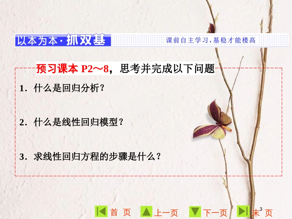 首页末页下一页上一页1首页末页下一页上一页回归分析的基本思想及其初步应用2首页末页下一页上一页预习课本P2~8,思考并完成以下问题1.什...