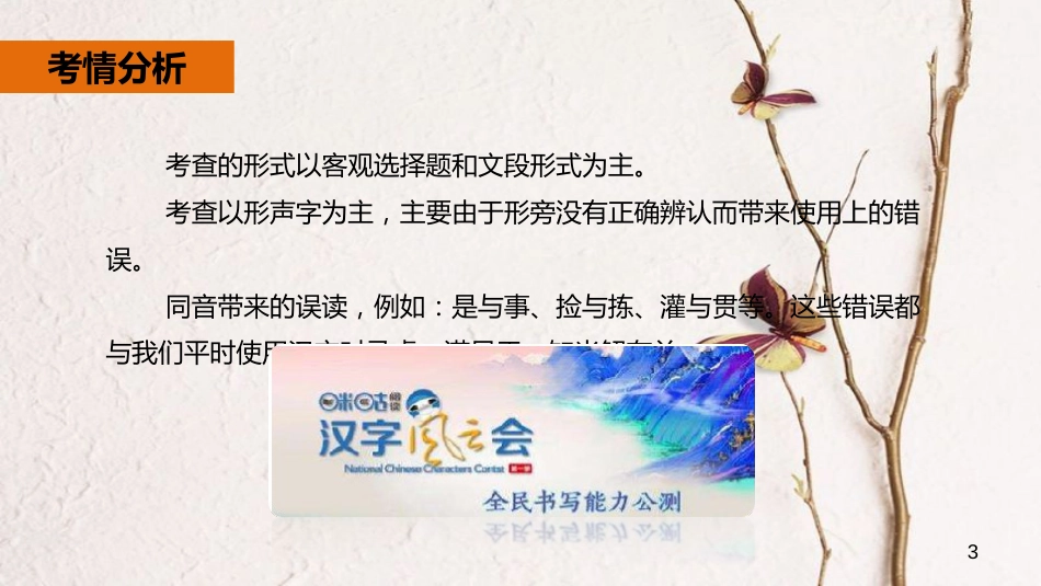 第二节字形2018年中考一轮复习11、正确书写常用汉字(做到端正、整洁,格式正确)。2、辨识并改正错别字。3、养成正确识记书写字形的良好习...