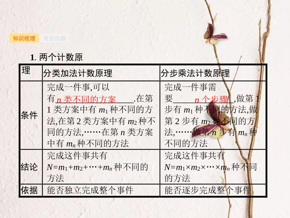 第十一章计数原理111.1分类加法计数原理与分步乘法计数原理2知识梳理考点自测1.两个计数原理分类加法计数原理分步乘法计数原理条件完成一件...
