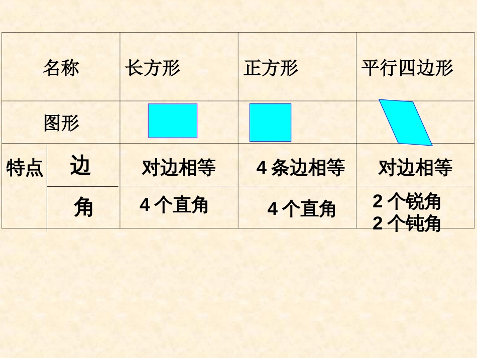 六安市长安小学名称长方形正方形平行四边形图形特点边角对边相等4个直角4条边相等4个直角对边相等2个锐角2个钝角顶点边边B记作:B读作:角B...