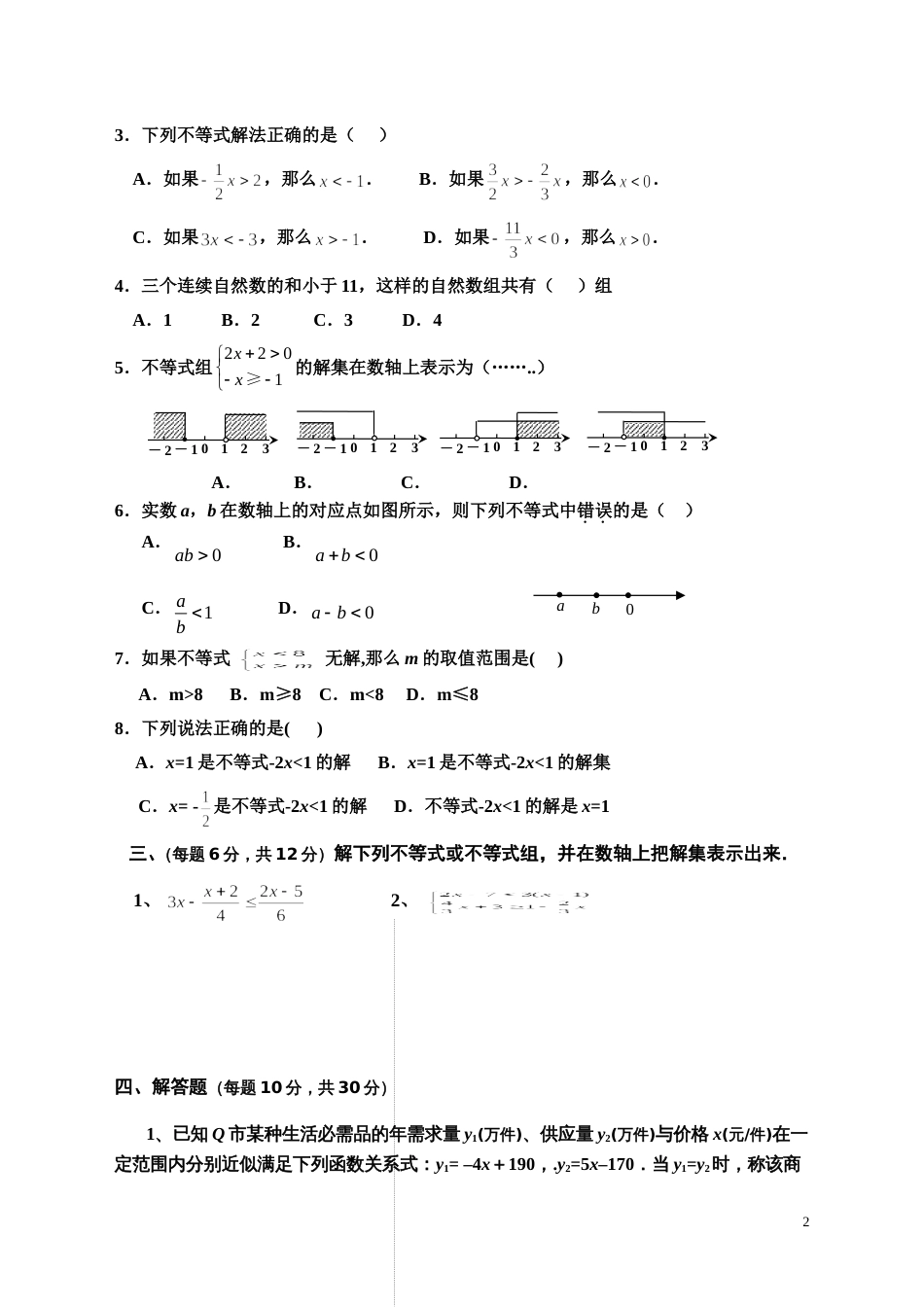 八年级下数学单元检测卷一元一次不等式及一元一次不等式组_第2页