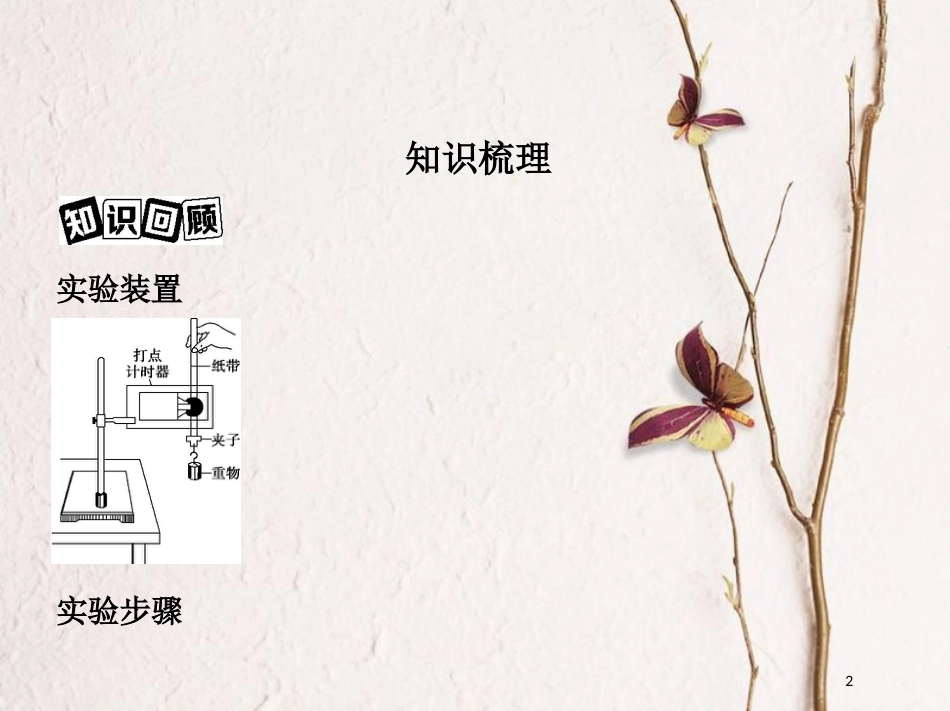 第6讲实验:验证机械能守恒定律知识梳理实验装置实验步骤21.安装仪器;2.将纸带固定在重物上,让纸带穿过打点计时器限位孔;3.用手提着纸带,让...