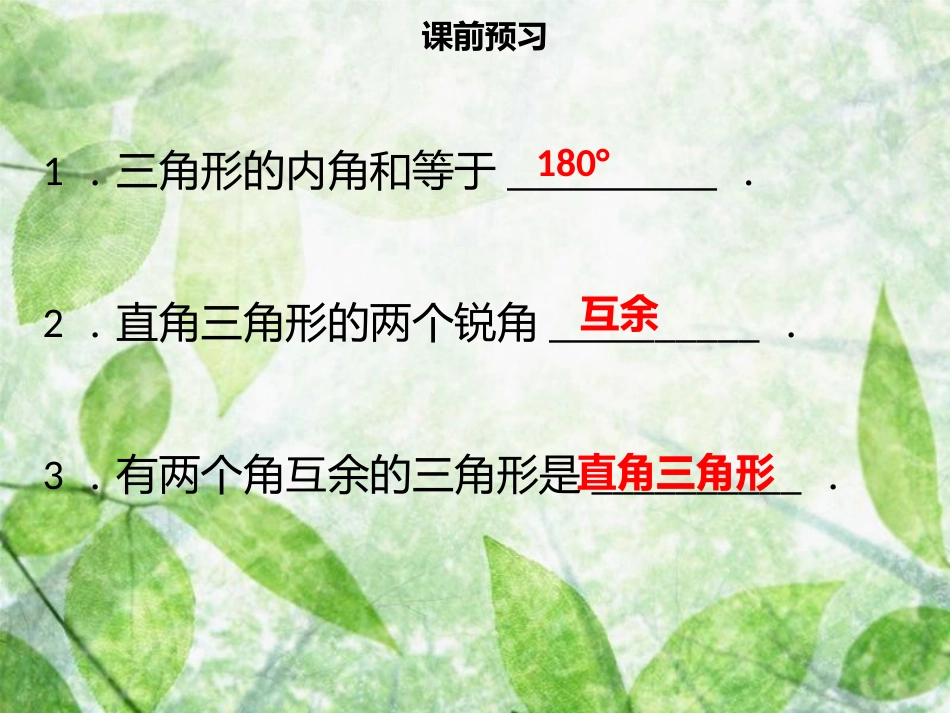 八年级数学上册 第十一章 三角形 11.2.1 三角形的内角同步优质课件 (新版)新人教版_第1页