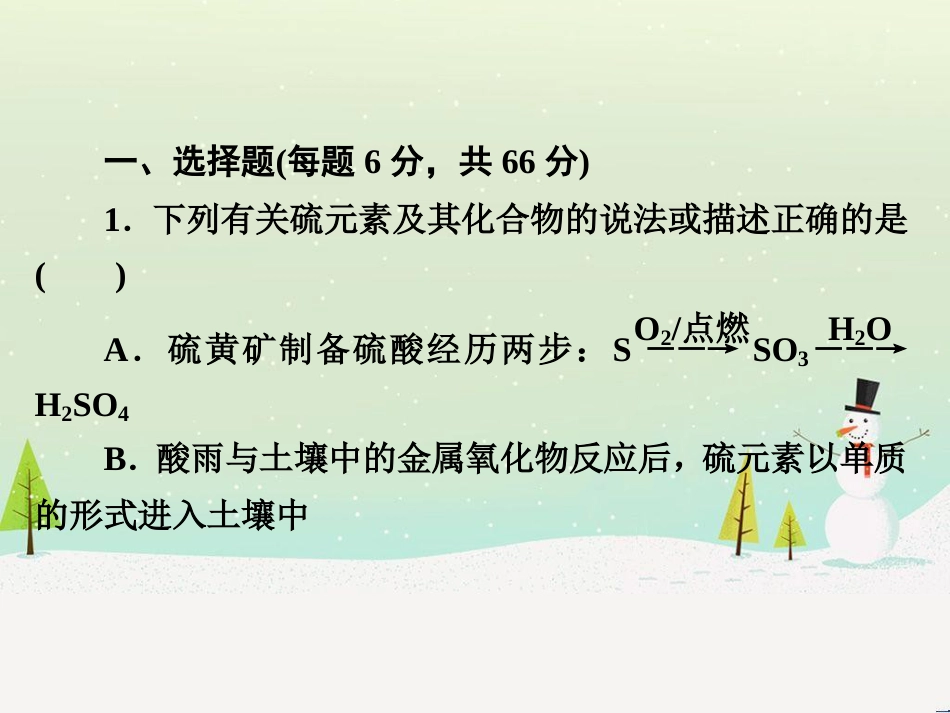 板块三限时·规范·特训时间:45分钟满分:100分一、选择题(每题6分,共66分)1.下列有关硫元素及其化合物的说法或描述正确的是()A.硫黄矿...
